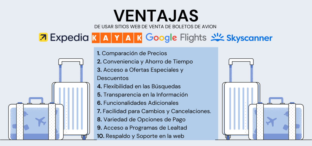 Una vez verificada la disponibilidad de su hospedaje ideal, es momento de elegir el website para comprar los mejores boletos de avión. La profesora de la Universidad de Bucarest, Mihaela Ciobanu, responde a la pregunta, ¿Por qué hemos optado por los sitios web de las compañías aéreas? «La idea de turismo supone en primer lugar viajar al lugar de destino. La adquisición del viaje se puede hacer por medio de las agencias de viajes y turoperadores, pero también, y esta es la modalidad preferida actualmente, por cuenta propia, a la medida de cada viajero. Para comprar un viaje, por ser el avión el medio de transporte más rápido, las páginas web de las compañías aéreas y los sitios buscadores y comparadores de vuelos se encuentran entre los más visitados.»